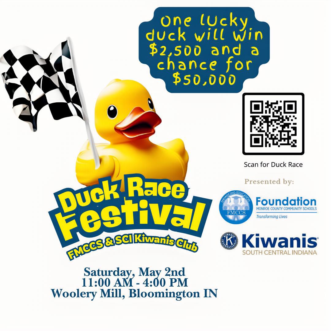 The Foundation of Monroe County Community Schools and the Kiwanis Club of SCI are teaming up for the second annual Duck Race Festival—and you're invited!