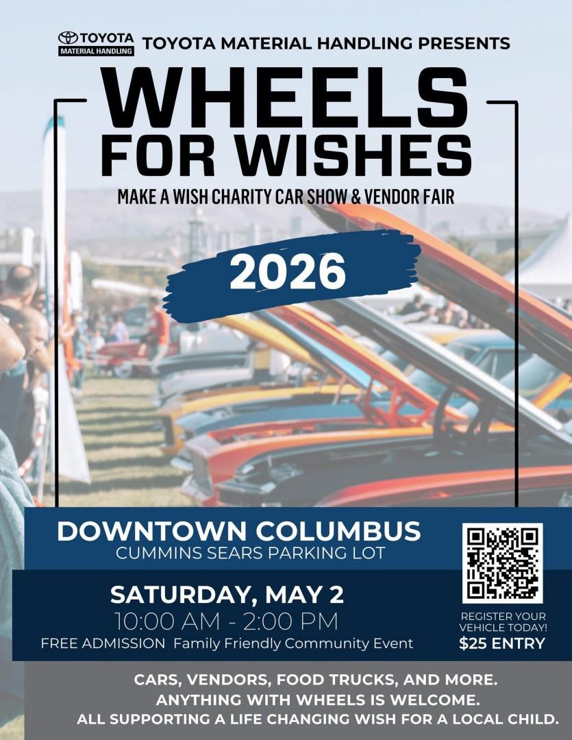 Cars and community collide at Wheels for Wishes, a family friendly charity car show and vendor fair benefiting a local Make A Wish child. Bring the whole family and help us drive hope forward.
