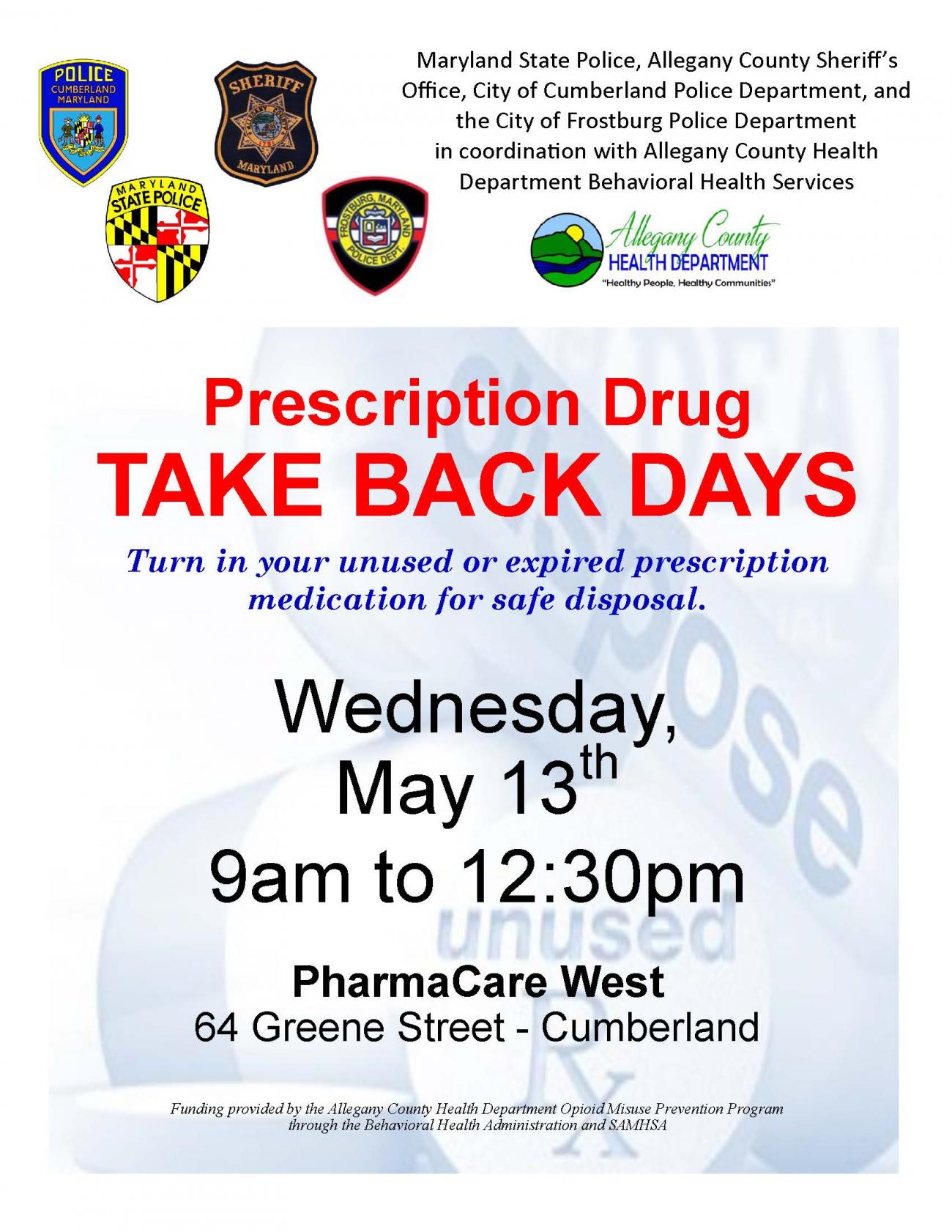Turn in your unused or expired prescription drugs at PharmaCare West on May 13, from 9am - 12:30pm.