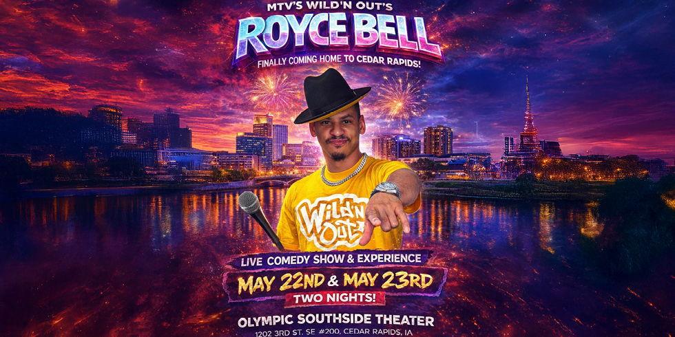 Born in Cedar Rapids and sharpened on stages far from it, Royce Bell returns for a two-night victory lap at The Olympic Theater, May 22 through May 23. This is not just another date on the calendar. This is a full-circle moment with a mic in hand and something to prove.