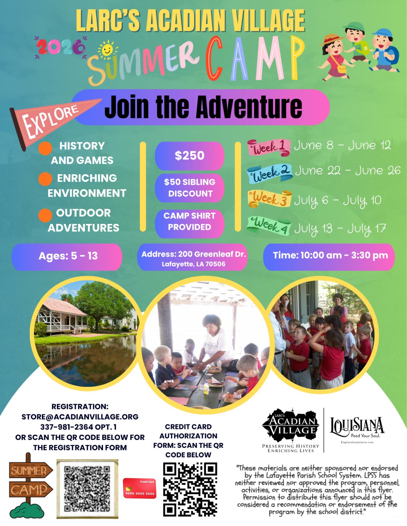 We’re excited to announce our 2026 Summer Camp, celebrating 50 years of Acadian Village!