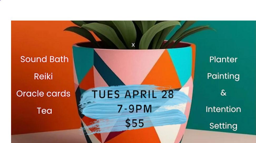 Explore and Connect with your Inner Canvas with a sound bath and reiki, followed by painting planters, intention setting, tea, & chocolate.