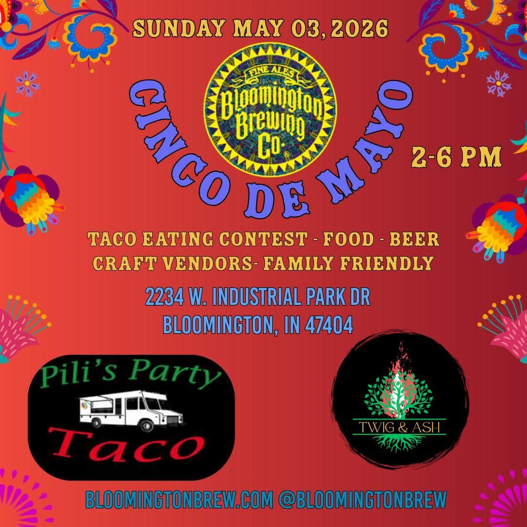 Celebrate Cinco de Mayo with Pili’s Taco Truck, Bloomington Brewing Company, and art vendors of Twig & Ash!