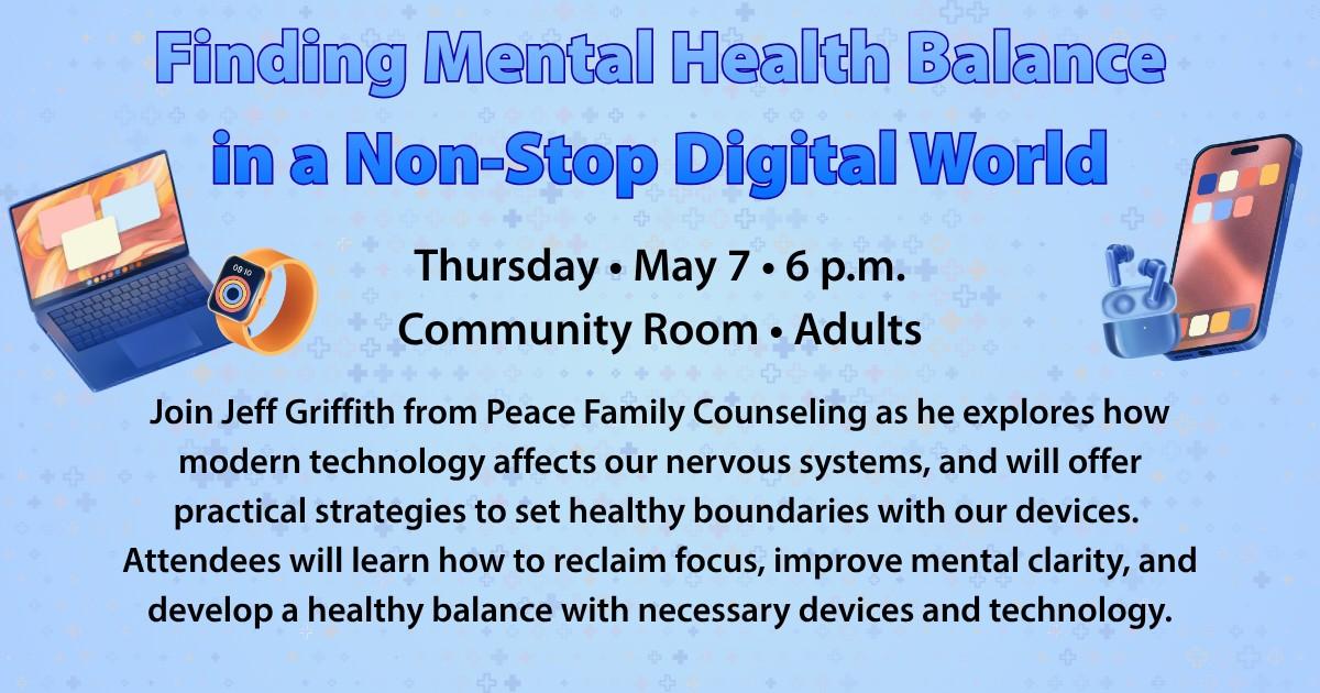 Learn tips and tricks to improve your mental health and relationship with technology! Registration is not required. Learn more at the link below.