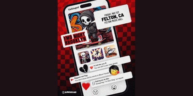 Welcome to Emo Night Brooklyn, a late-night, DJ-driven dance party blasting the best emo and pop punk jams that raised us, ruined us, and somehow still define us. We’re taking over Felton Music Hall in Felton on 1 May 2026 for a night of screaming every word, moshing with strangers, and feeling absolutely everything.