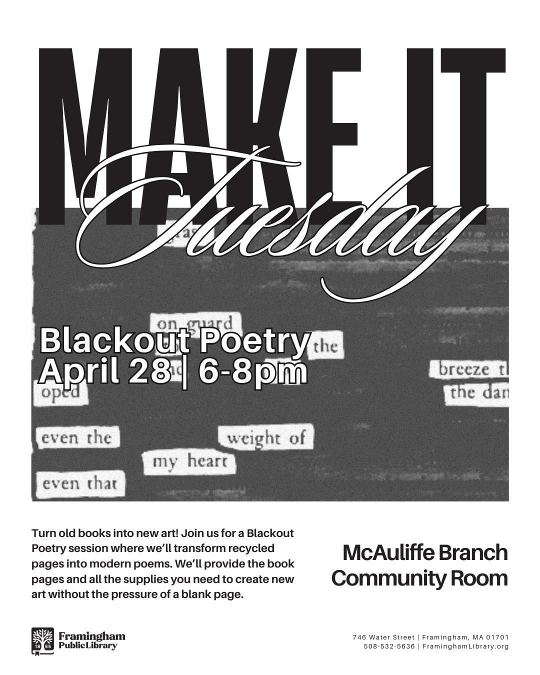 More About Make It Tuesday: Blackout Poetry | FPL McAuliffe Branch