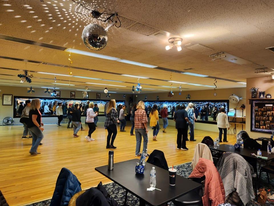 Street shoes not allowed on dance floor, bring a shoe/boot with a soft sole that will allow you to twist easily on your toes.