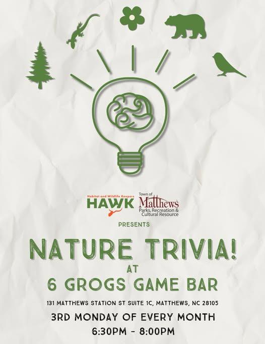 Are you a nature enthusiast or just love a good challenge? Come test your knowledge at our Nature Trivia Night held at 6 Grogs Game Bar on the third Monday of each month from 6:30 pm to 8 pm!