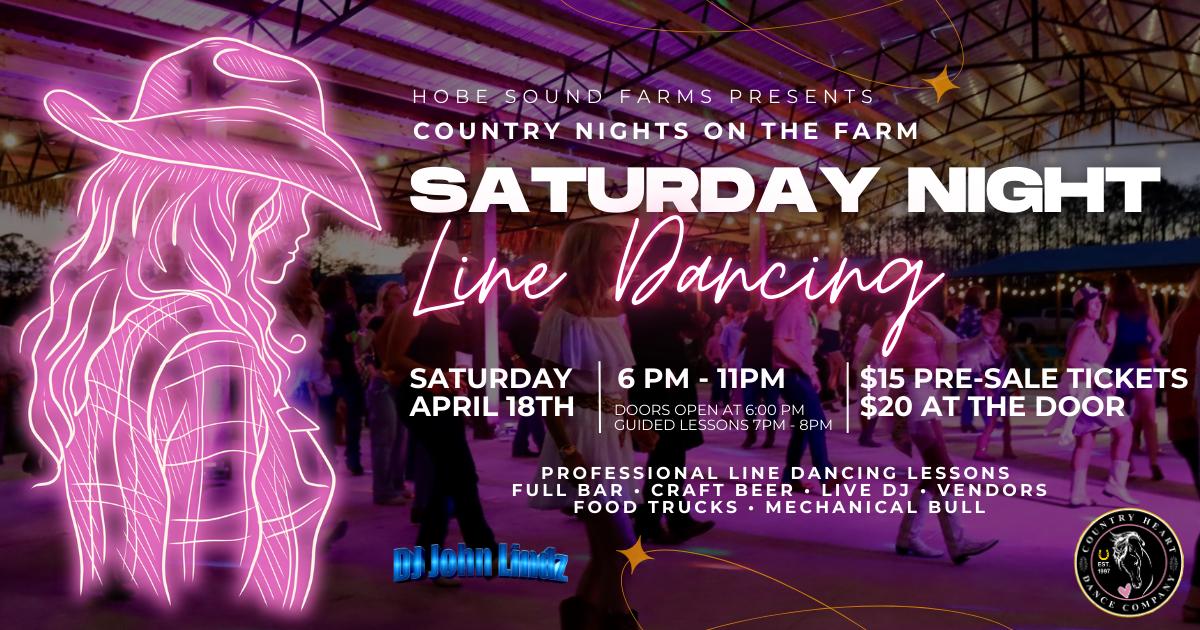 Dust off your boots and join us on Saturday night. Our farm comes alive under the stars with the perfect mix of country fun and community vibes. Enjoy country western line dancing lessons by Country Heart Dance Company, legendary county DJ John Lindz, and test your grit on the mechanical bull. Grab a drink from our full bar or sip on some craft beer, refuel at food trucks, and browse local vendors while the music keeps rolling. Hobe Sound Farms is where friends, neighbors, and newcomers come together for an unforgettable night of dancing, laughter, and wide-open skies.