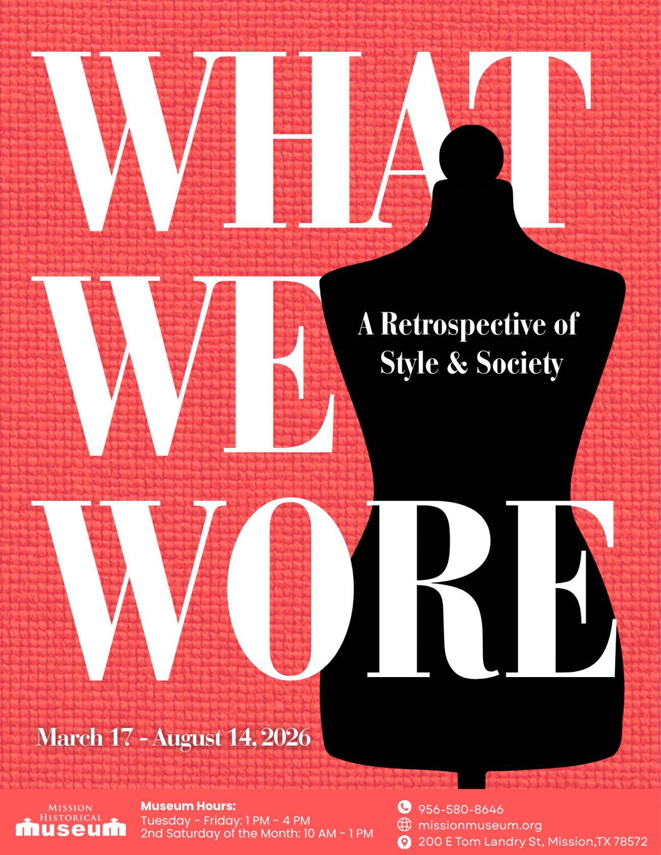 Visitors can step into the story of Mission through apparel at “What We Wore: A Retrospective of Style & Society” at the Mission Historical Museum. This exhibit explores how clothing reflects culture, values, and community, revealing identity, social ties, and moments of change throughout the 20th century. Discover how what we wore tells the story of Mission’s people. The exhibit will be available from March 17 - August 14, 2026 at the museum located at 200 E Tom Landry St in Mission. Free admission, always!