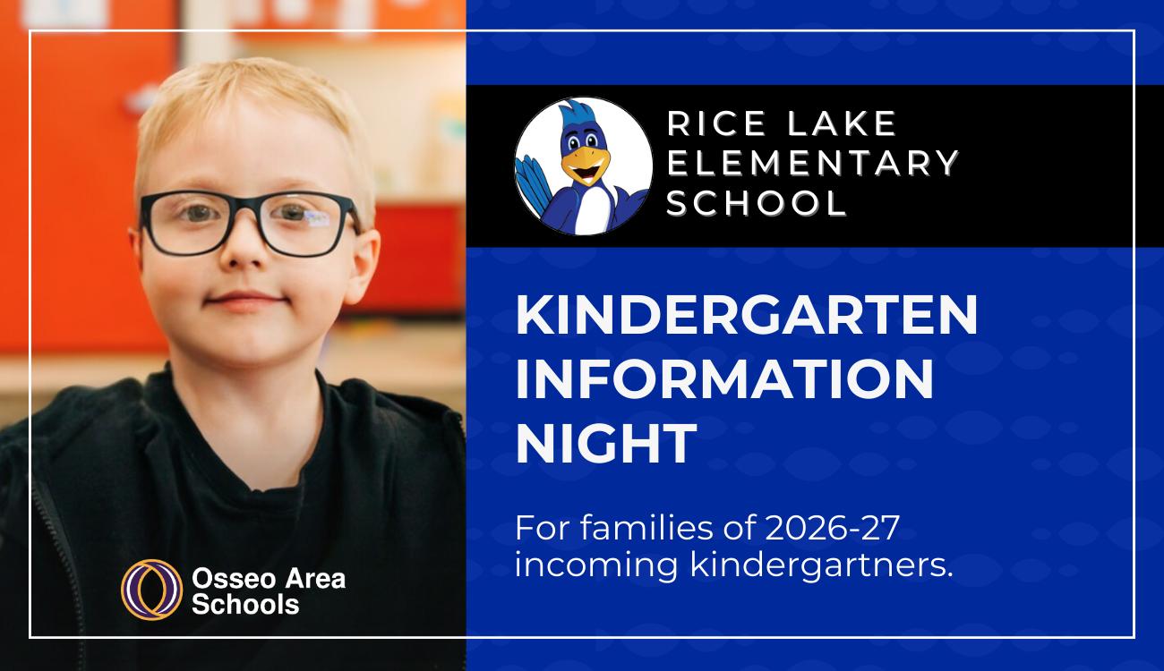 April 23, 2026 from 4:30-5:30 p.m. Explore what kindergarten looks like at Rice Lake Elementary School. Designed for families of 2026–27 incoming kindergartners, this event offers a welcoming introduction to the school community. Meet teachers and school leaders, step inside classrooms and learn about daily routines, curriculum and student experiences. Whether new to Osseo Area Schools or already enrolled, families will leave with helpful information and a better understanding of what to expect in kindergarten.