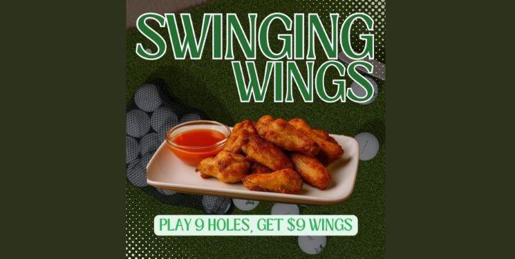 Join us for Swinging Wings Thursdays, where great swings earn even better bites. Play 9 holes and unlock 12 wings for just $9.