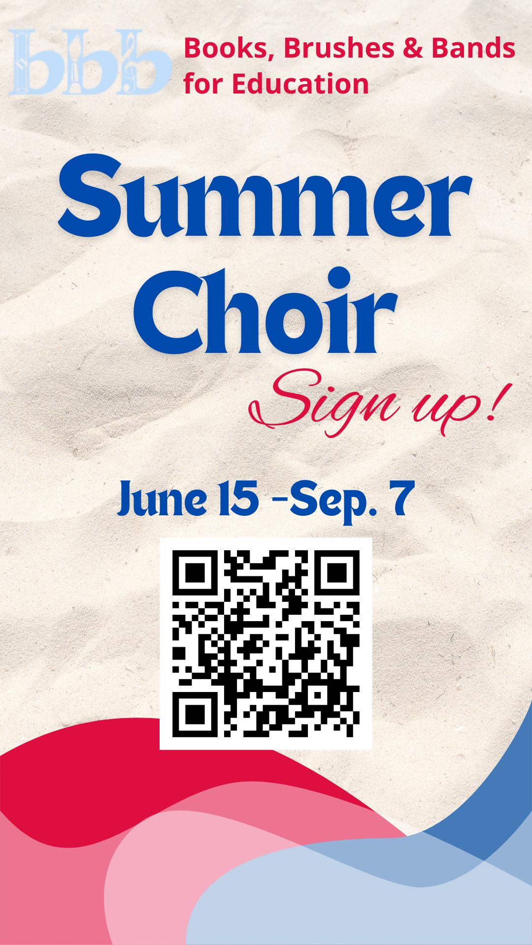 Summer Choir begins in June! Scan the QR Code or click the link to save your spot. Click for Details