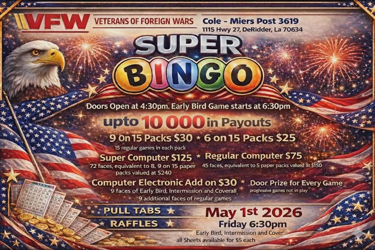 Get ready for a big night of fun, prizes, and exciting bingo games at the ColeβMiers VFW Post 3619 Super Bingo!