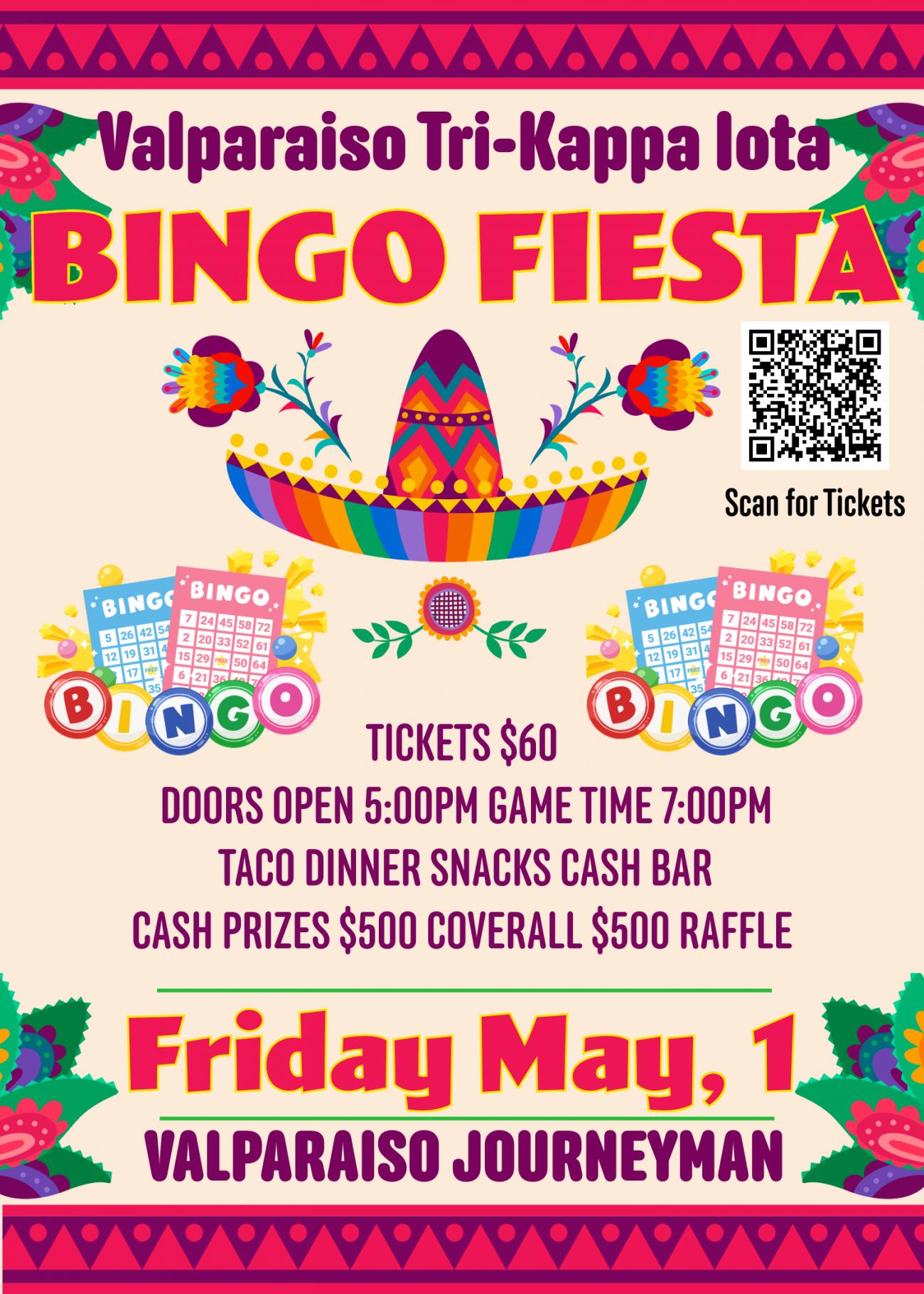A fun night of Bingo and Tacos supporting Valparaiso Tri Kappa. Doors open @ 5pm, games start @ 7pm. Cash Prizes, Raffle & Cash Bar. Tickets on sale online: Click for Details