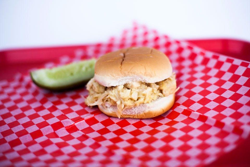 Open the canned chicken and skim off the fat from the top. Crush the Ritz crackers into crumbs. Combine all ingredients, and heat on the stove or in a slow cooker until well warmed. Spread on a hamburger bun to serve.