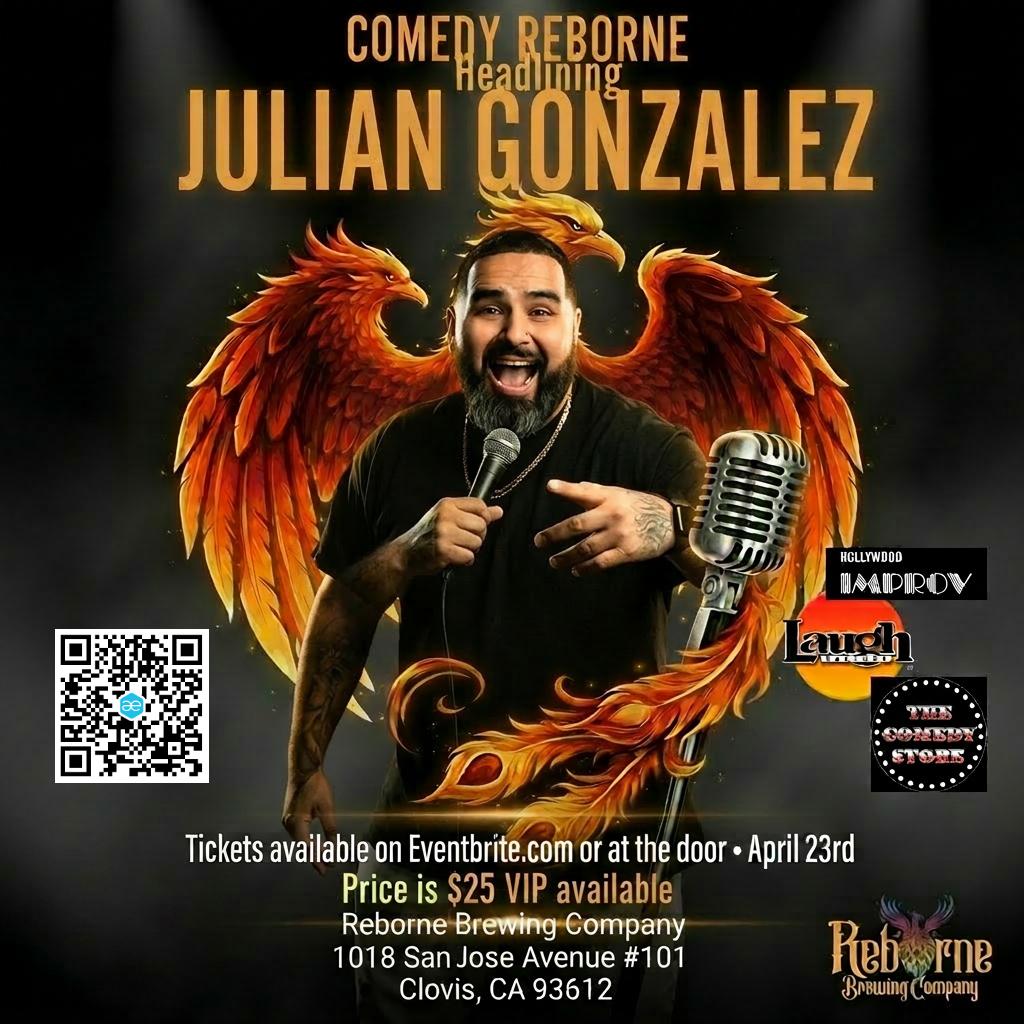 Get ready for a night full of laughs at Reborne Brewing Company! Join us on April 23, 2026 at 7:00 PM (PDT) for an awesome live comedy show featuring the hilarious Julian Gonzalez. Perfect way to kick back, enjoy great brews, and have a blast with friends. Don’t miss out on this fun evening of top-notch comedy and good vibes!