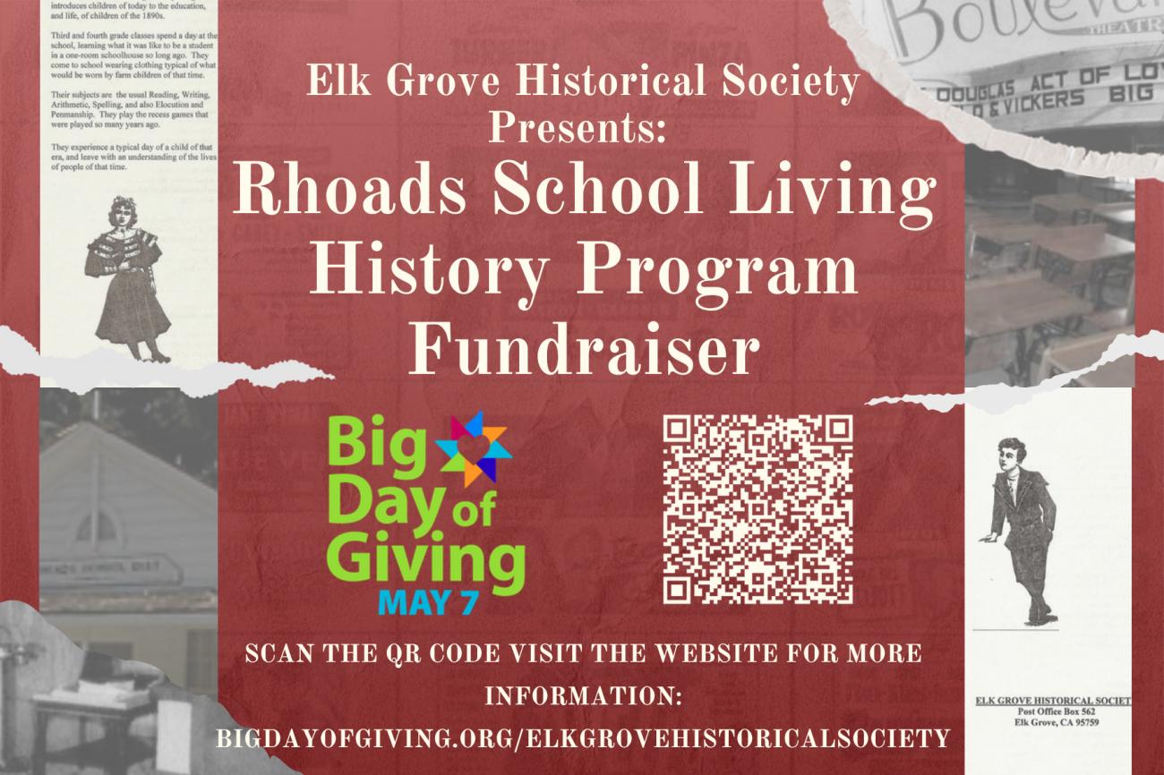 The Elk Grove Historical Society is participating in the Big Day of Giving to support the Rhoads School Living History Program.