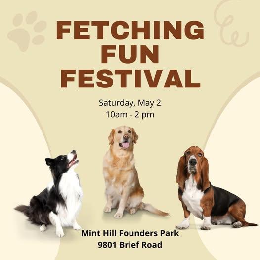 Grab the leash and join us Saturday, May 2nd, from 10:00 am – 2:00 pm for the Fetching Fun Festival at Mint Hill Founders Park!