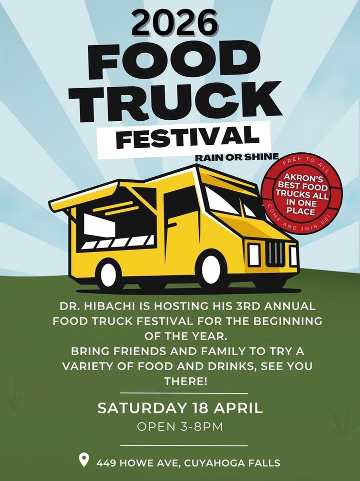 DR. HIBACHI IS HOSTING HIS 3RD ANNUAL FOOD TRUCK FESTIVAL FOR THE BEGINNING OF THE YEAR.