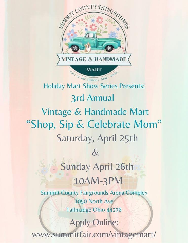 he promoters from the yearly Holiday Mart bring you Summit County Vintage & Handmade Mart. JOIN US APRIL 25 and 26 at the Summit County Fairgrounds Arena Complex for our third annual Vintage & Handmade Mart. Over 100 vendors displaying antiques, repurposed furniture and other items, home crafts, art and bakery items!