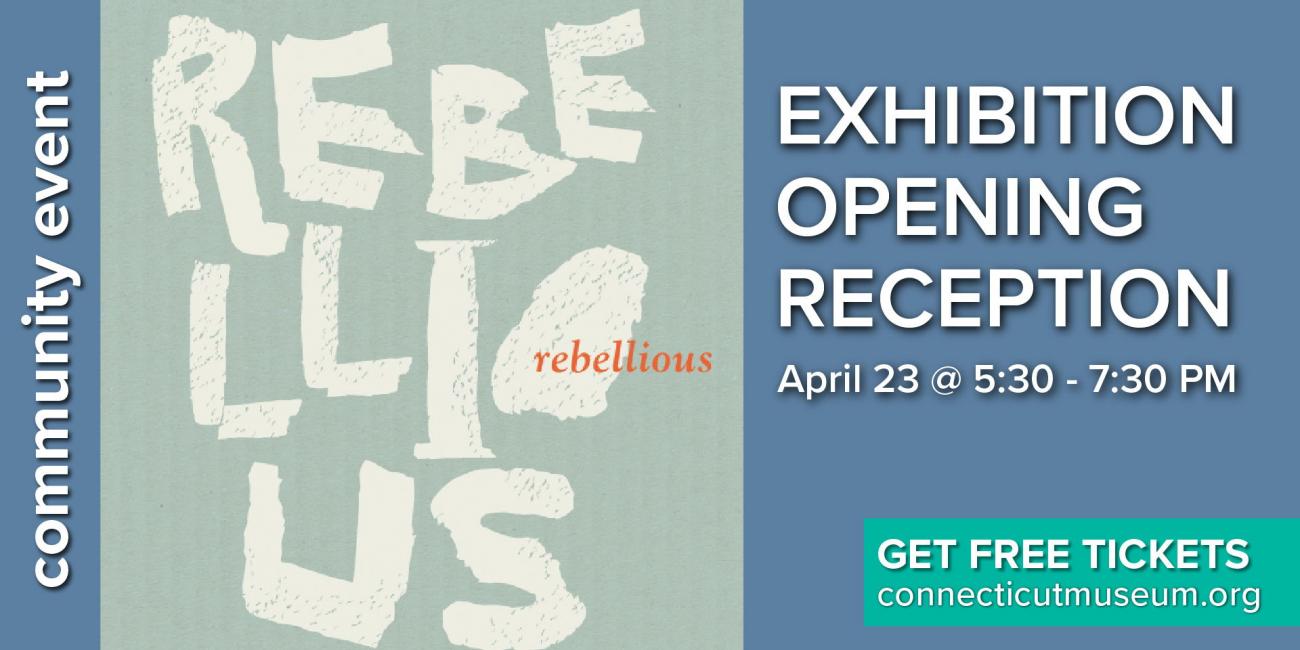 Join us for the opening reception of our newest exhibition, "Rebellious," inspired by the 250th anniversary of the signing of the Declaration of Independence. Rebellious features moments throughout Connecticut history when its people came together, pushed back, and sparked change to pursue their own visions of life, liberty, and happiness in America.